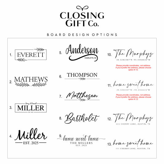 CUSTOM CLOSING GIFT BASKET SET - CHEESE BOARD + COASTERS + TUMBLERS