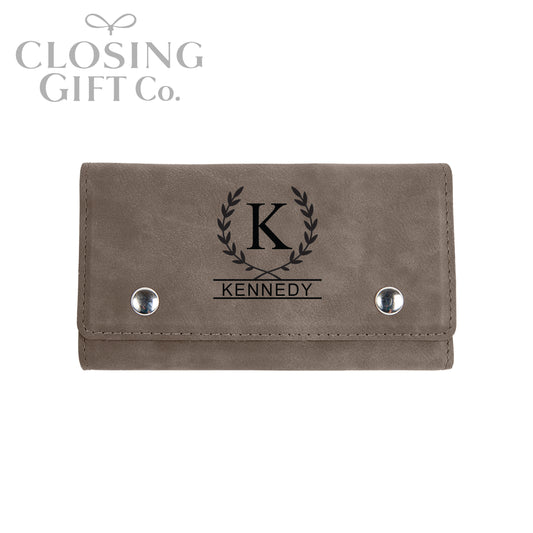 LEATHERETTE CARD DECK & DICE SET IN CUSTOM ENGRAVED SNAP CASE