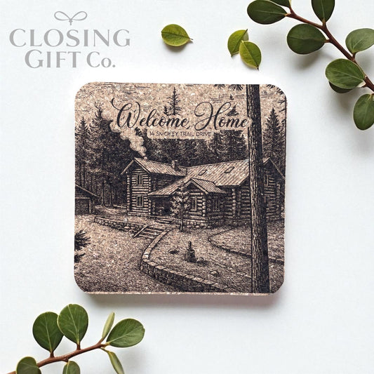 CUSTOM PORTRAIT OF HOME - ENGRAVED ON CORK COASTER SET OF 4