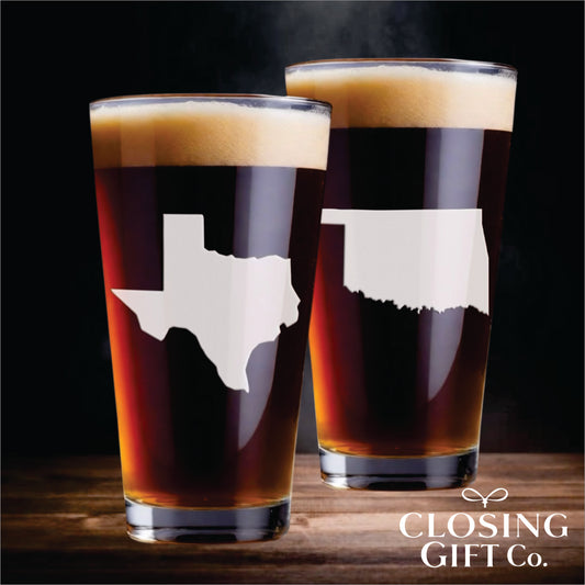 PINT GLASS ENGRAVED WITH STATE SHAPE OF YOUR CHOICE
