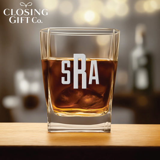 WHISKEY GLASS WITH ENGRAVED LEATHER WRAP