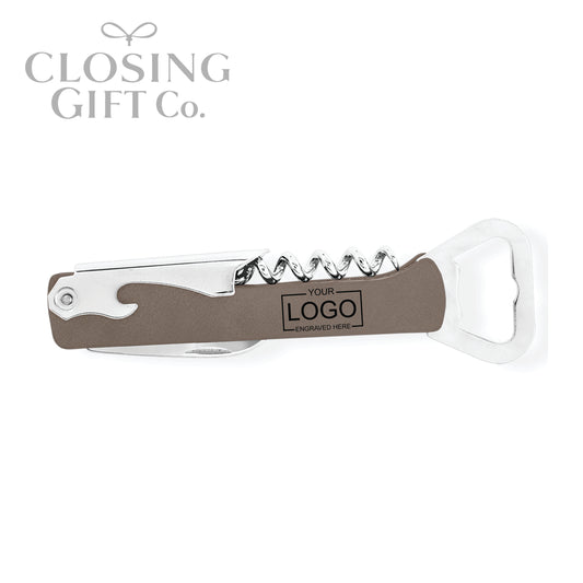 LEATHERETTE MULTI TOOL CORKSCREW WINE & BOTTLE OPENER