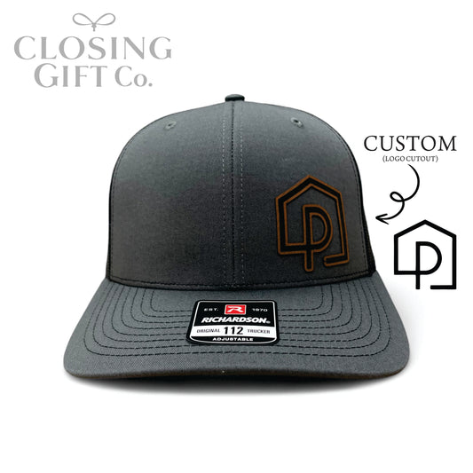 TRUCKER HAT WITH CUSTOM LEATHER PATCH -ENGRAVED WITH YOUR LOGO
