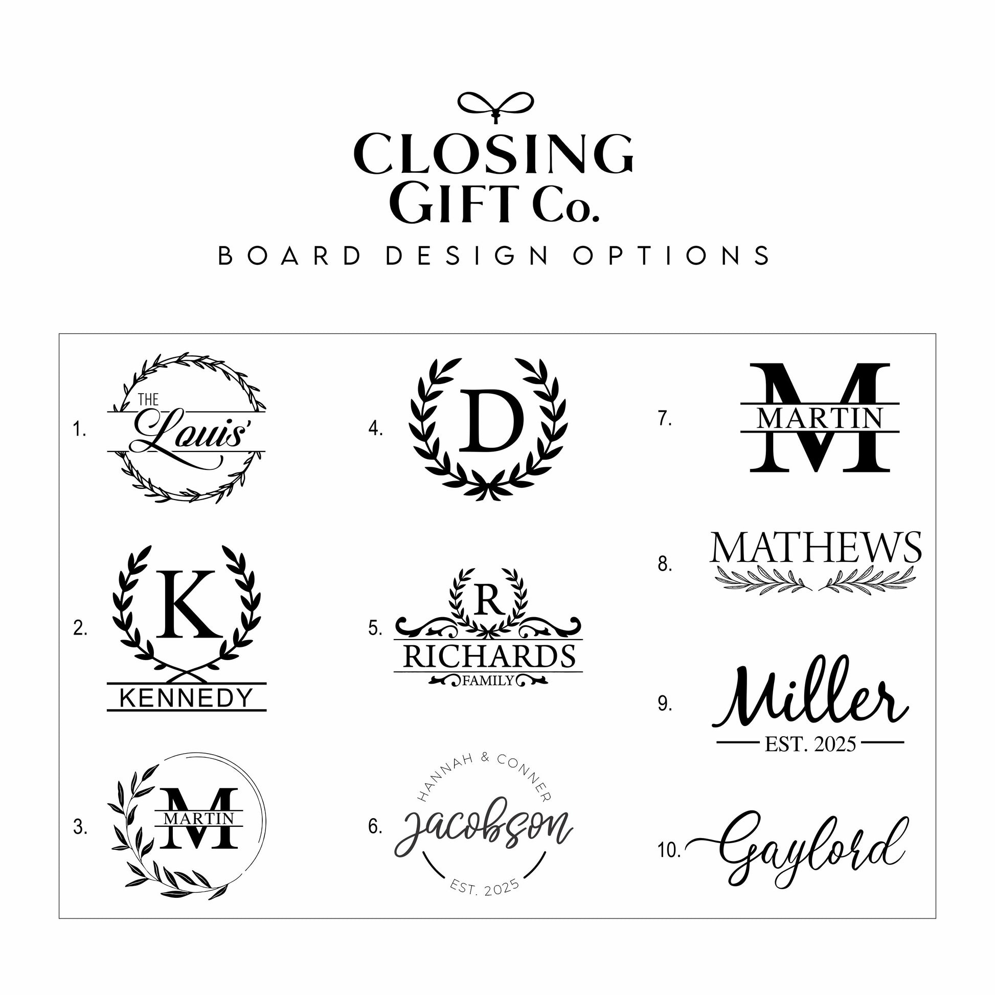 (Refer to photos for design choices)