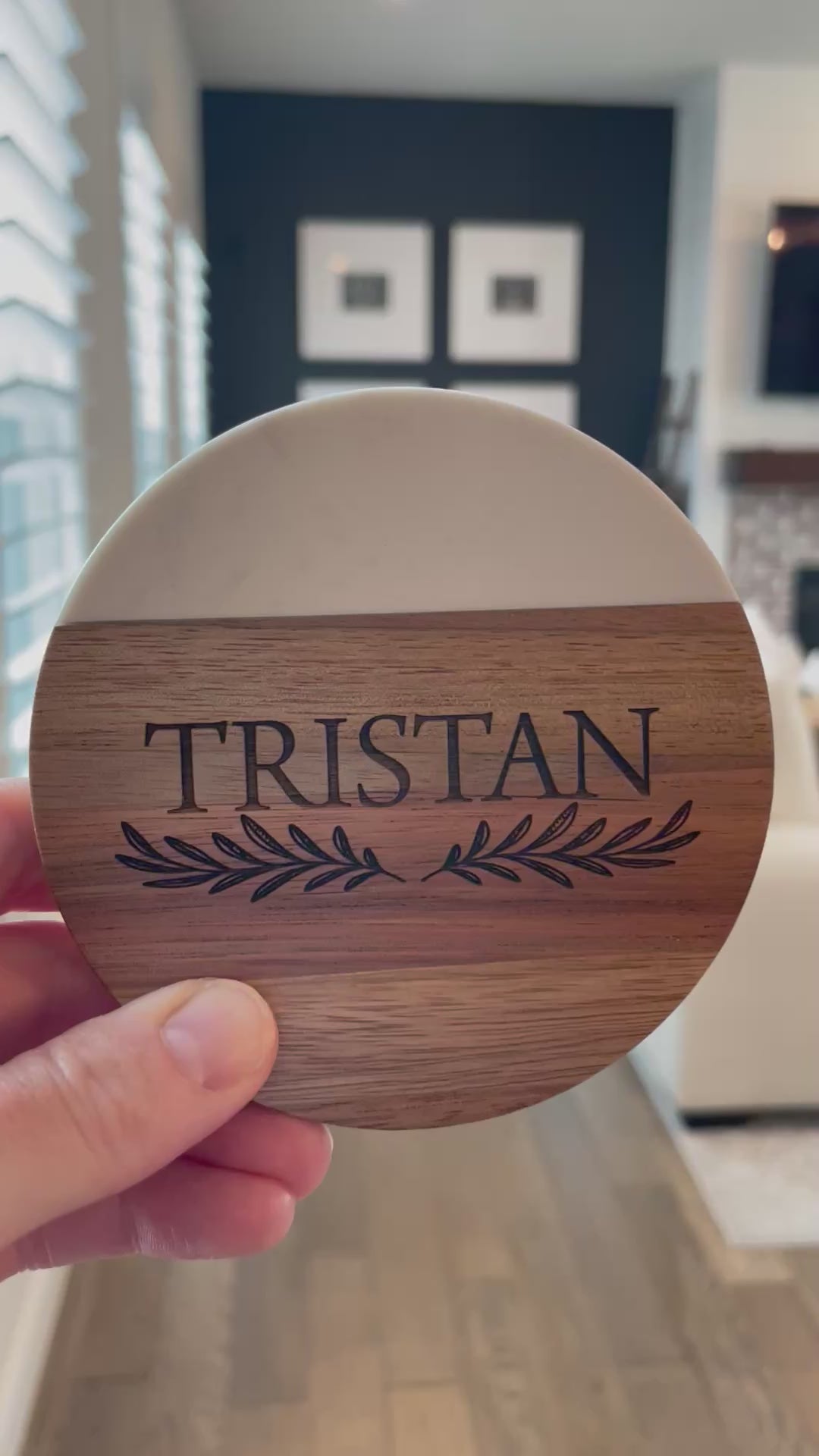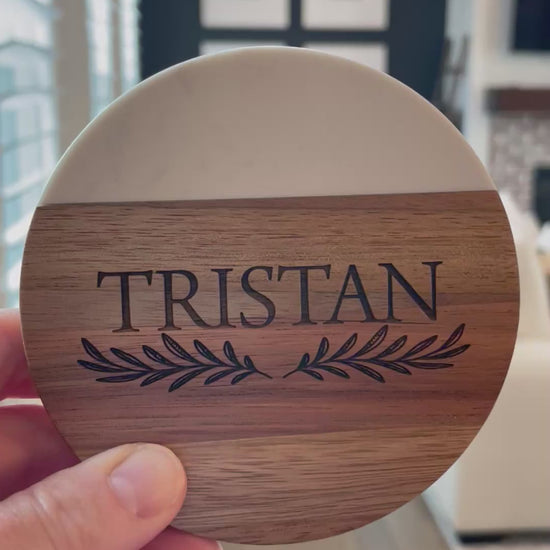 • Acacia Wood & Marble Coaster Set of 4. (4" dia.)