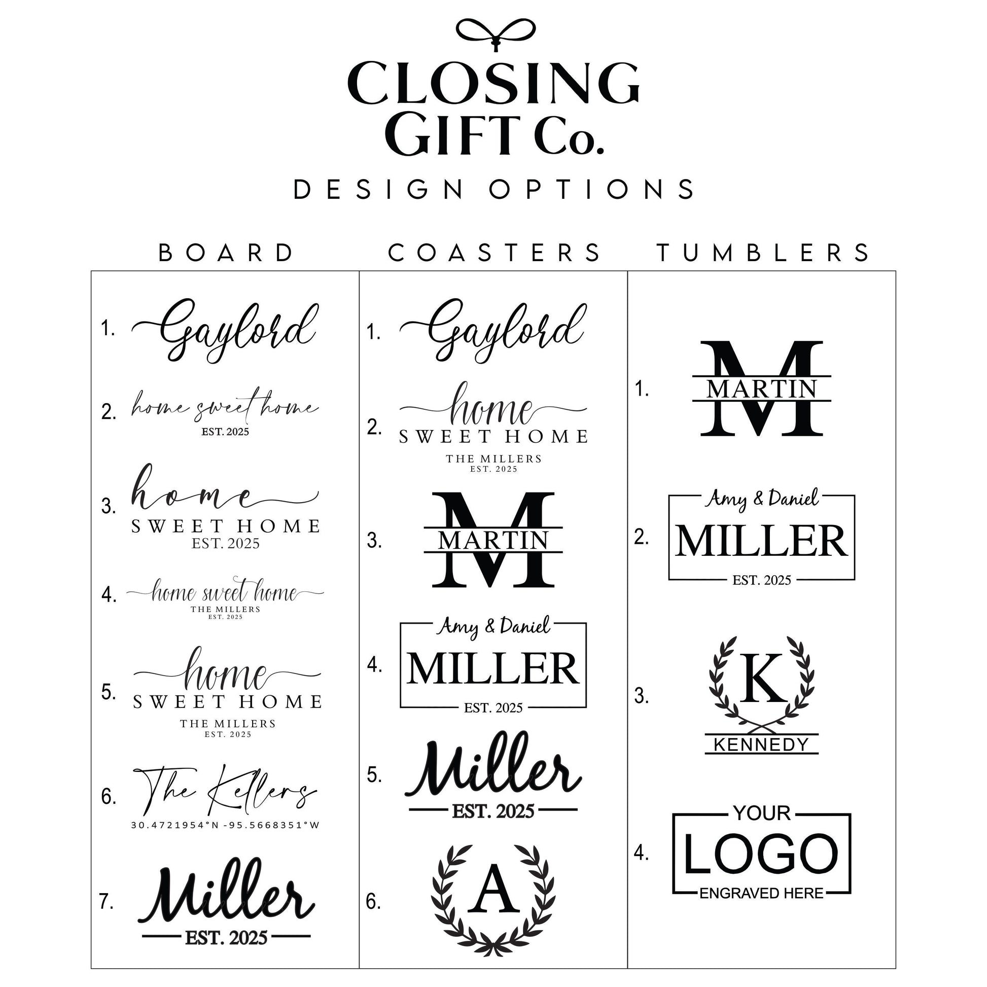 All items will be professionally laser engraved with your chosen design option.
