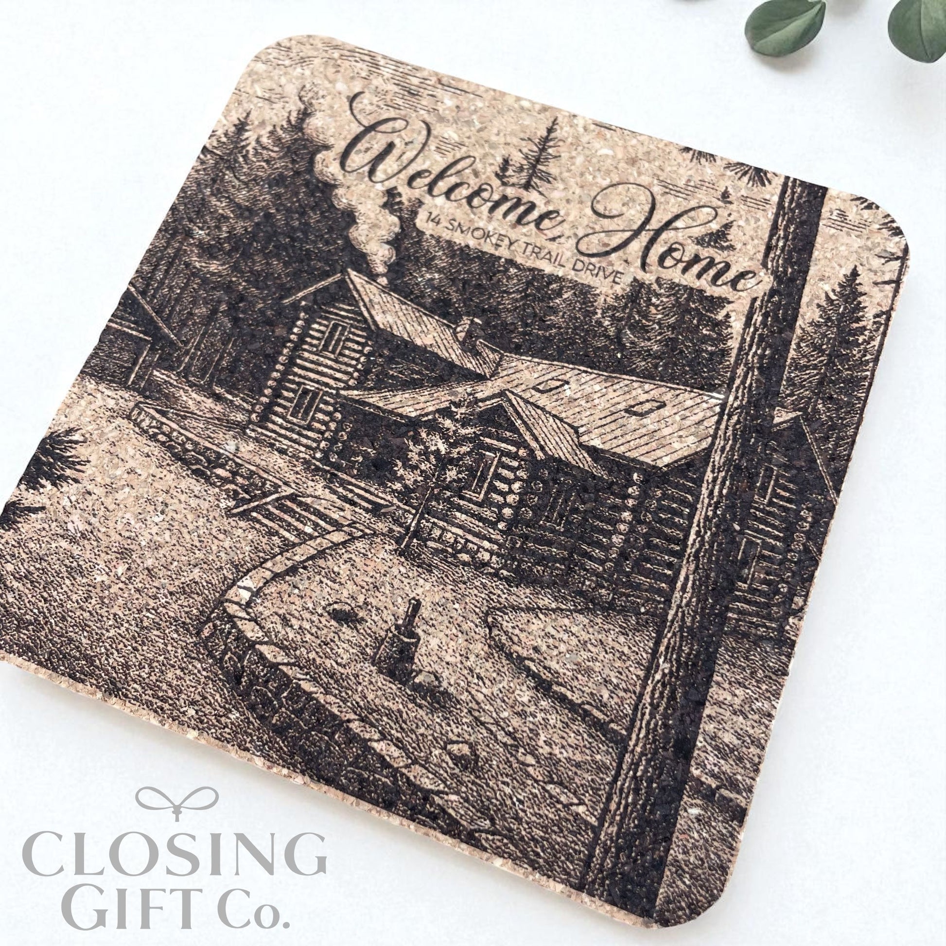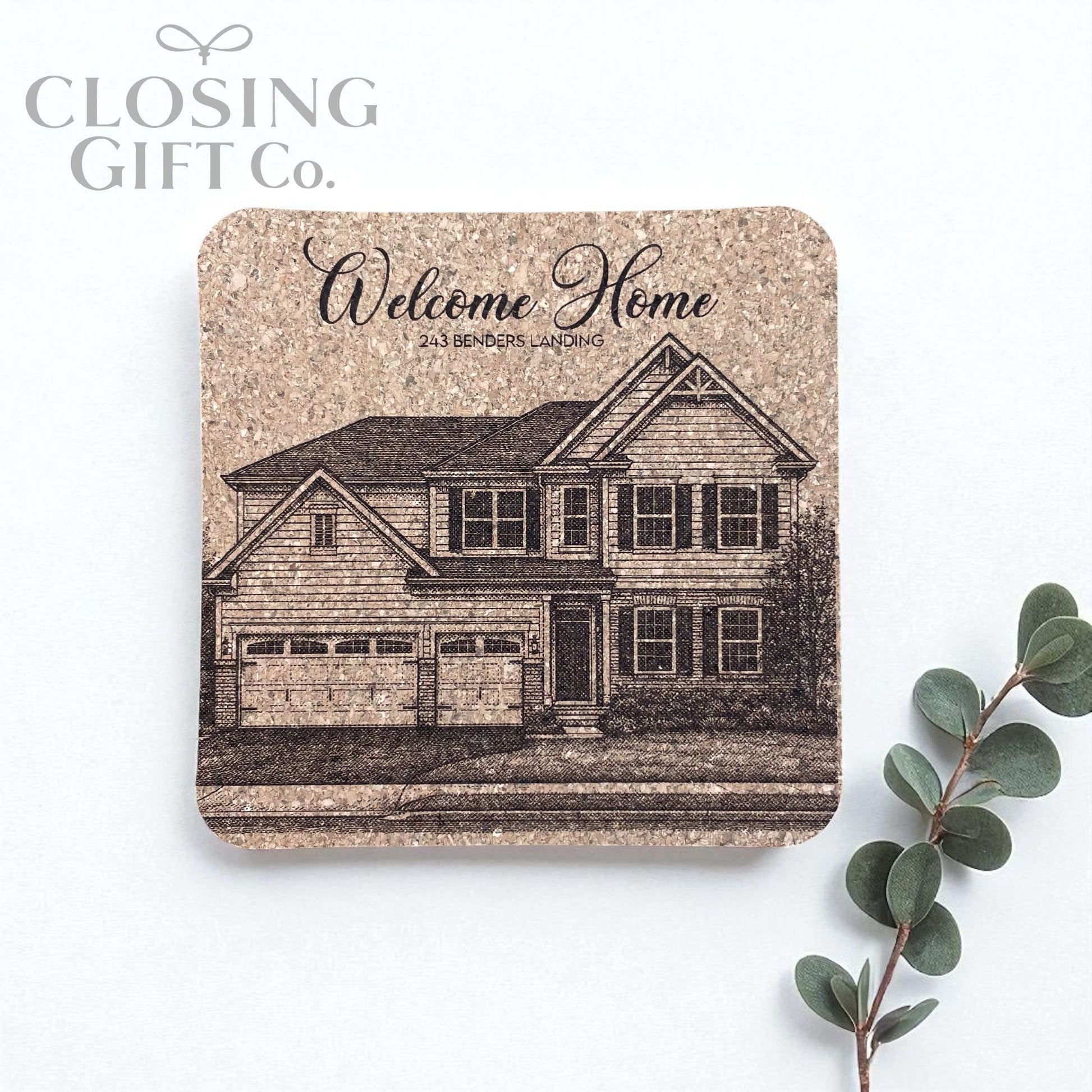 Each Coaster Will be Engraved with a Photo of the Home + Welcome Home + Client's Address.