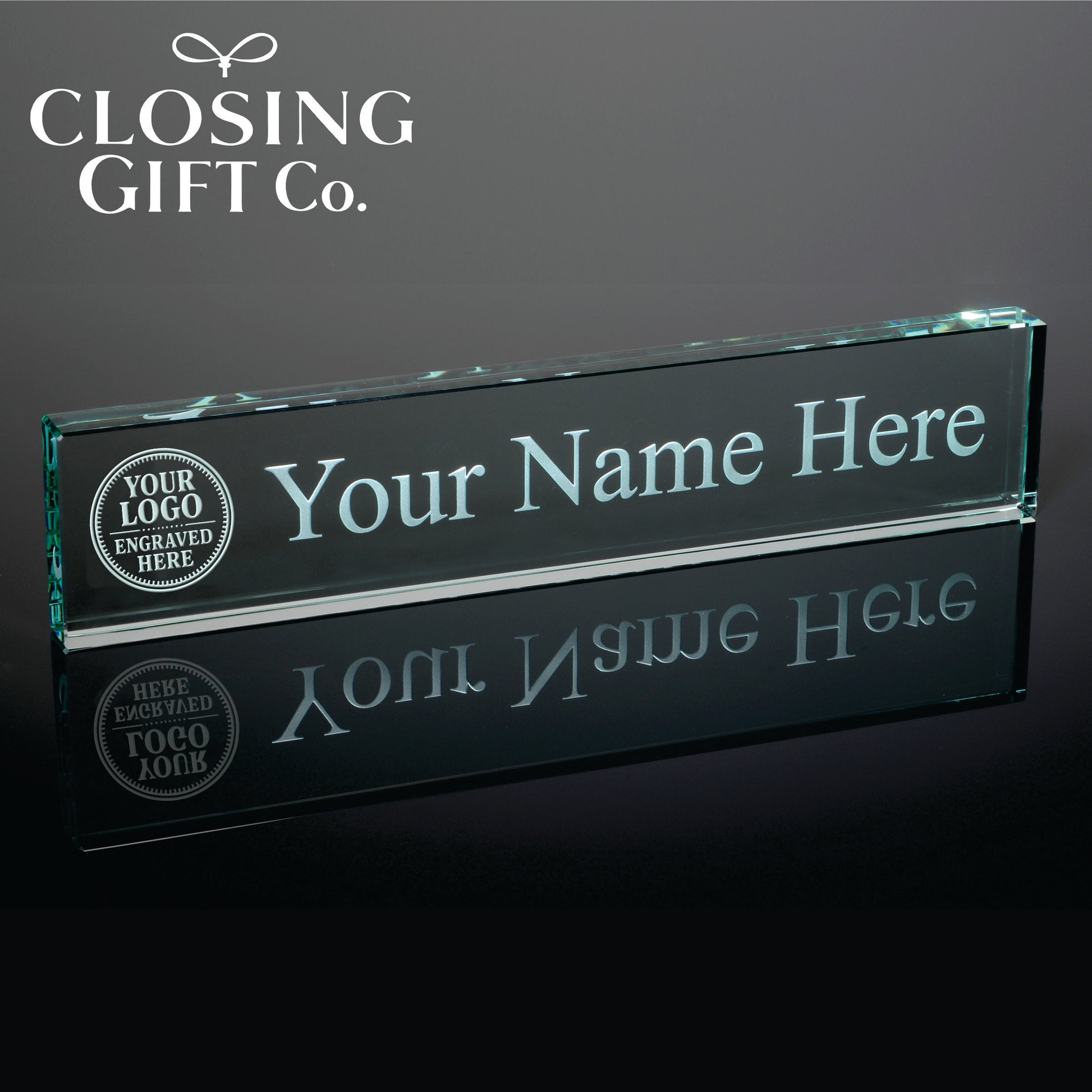 Jade Glass Desk Nameplate w/ Gift Box.