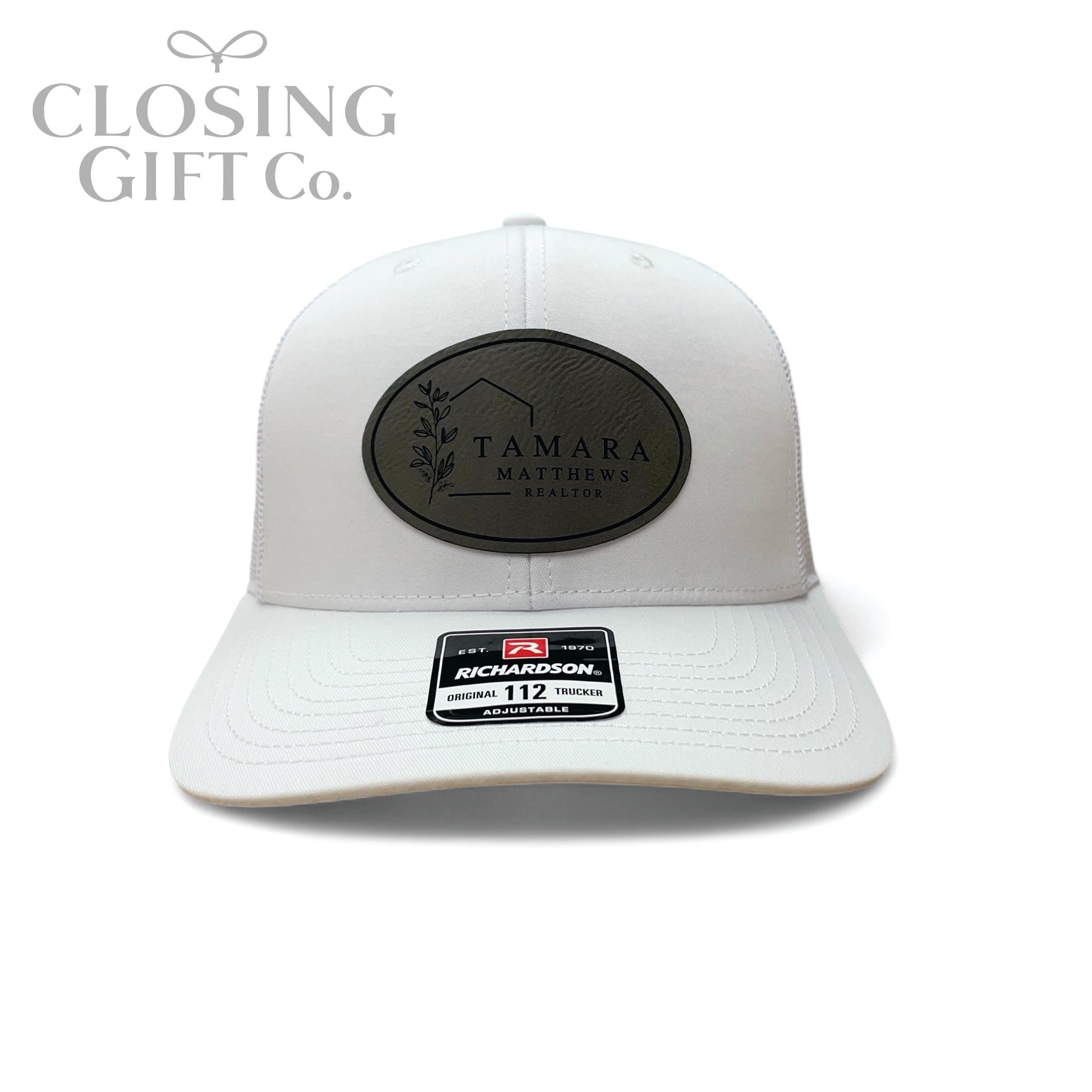 Richardson Trucker Hat with Custom Engraved Vegan Leather Patch.